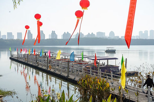 在“让我们荡起双桨”悠美的歌声中,首批10艘智能游艇载着游客,轻快驶离艾溪湖游客码头,开启了湖中的智能自动驾驶航行之旅。