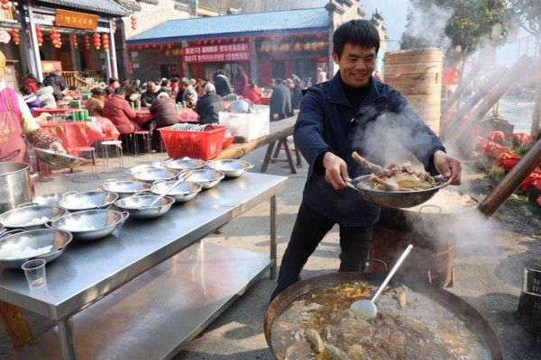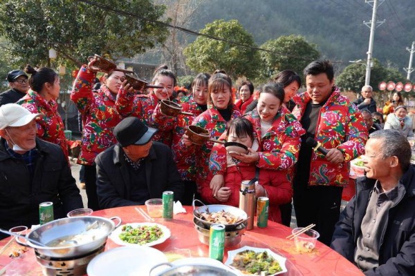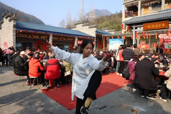 活动现场,400多名游客一下车就受到了迎宾锣鼓的欢迎,“猴哥”“八戒”带领游客进入景区沉浸式体验:了解九蒸九晒的黄精程序,参观腊蹄子、腊肉、风干鸡制作,套圈砍价购买乡土年货,听五山故事(省级非遗),品云雾山黄酒(市级非遗),吃五山八大碗(市级非遗),午餐还提供了米酒汤圆、黄精鸡汤等。下午,金牌导游带领客人进入峡谷体验天然氧吧,寻古探幽、参与水上项目。当天销售年货10多万元。