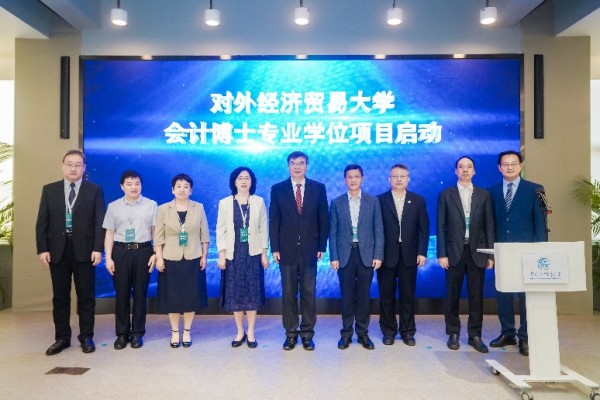 在启动仪式上,学校领导与校外嘉宾共同启动对外经济贸易大学会计博士专业学位项目。这标志着对外经济贸易大学高层次会计人才培养开启了新篇章。