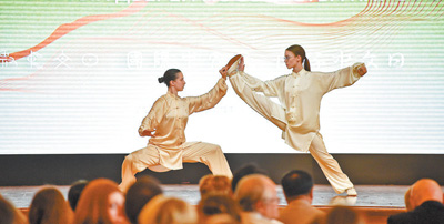 4月25日,俄罗斯莫斯科大剧院演出大厅内座无虚席。舞台上,中国舞者以灵动身姿将咏春拳的刚健与舞蹈的柔美精妙融合,一招一式尽显中华传统文化的博大精深。中国深圳歌剧舞剧院演出的原创舞剧作品《咏春》为当地观众献上一场文化盛宴,赢得台下阵阵掌声和热烈喝彩。全俄艺术体操联合会前主席伊琳娜·维纳在观演后感慨:“能通过演出与中国文化交流互鉴,我感到无比幸福。”