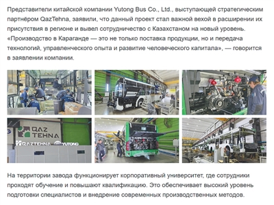 该项目是宇通客车扩大在该地区业务的重要里程碑,并将与哈萨克斯坦的合作提升到一个新水平。该公司负责人表示:“在卡拉干达的生产不仅是产品的供应,更是技术转让、管理经验的传授以及人力资本的发展。”