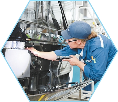 工作人员在CKD工厂内进行客车检修作业。