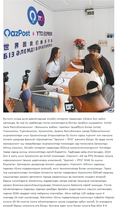 ——摘自乌兹别克斯坦Tnews网站报道《在联合采访中了解哈萨克斯坦邮政情况》