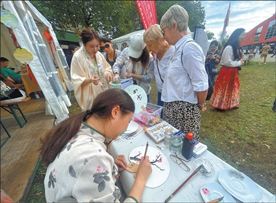 中国节期间,展示了多种语言版本的中国图书,北威州4所孔子学院联合开设非遗等中华文化体验专区。剧院广场一侧搭起巨大的中式戏台,游客在摊位前排起长龙,等待品尝武汉热干面、陕西凉皮等中国特色美食。在现代科技专区,不少民众前来咨询赴华旅游及在华支付业务。中国银行工作人员介绍了即将全欧首发的银联“锦绣中华卡”,专为外籍人士来华提供便捷支付服务。