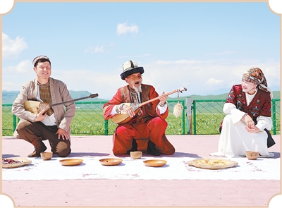 新源县艺人在那拉提景区演奏传统乐器。