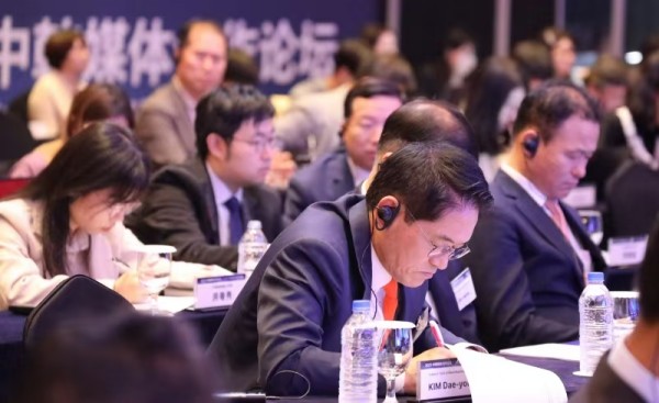 10月13日,以“中韩合作 智创未来”为主题的2025中韩媒体合作论坛在韩国首尔举行。人民日报社社长于绍良、韩国每经传媒集团会长张大焕、韩国前国会议长朴炳锡、中国驻韩国大使戴兵出席论坛并致辞。两国近百名媒体代表、外交使节、专家学者和企业界人士,就经济发展、绿色转型、媒体合作等议题深入交流研讨。