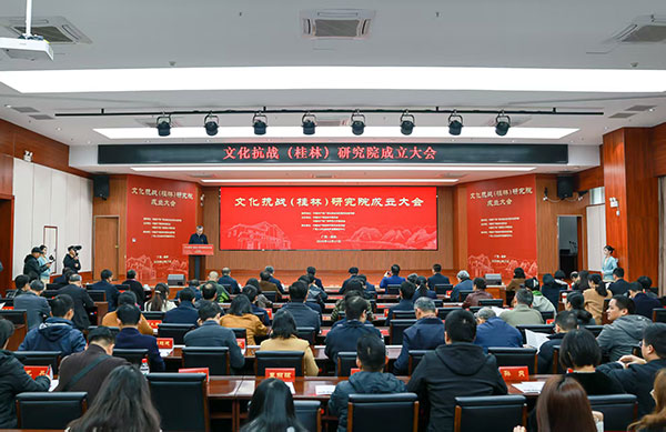 12月17日,文化抗战(桂林)研究院在广西师范大学育才校区揭牌成立。广西壮族自治区党委宣传部常务副部长沈传亮、桂林市委书记李楚、广西师范大学党委书记贺祖斌出席并致辞,共同为研究院揭牌。