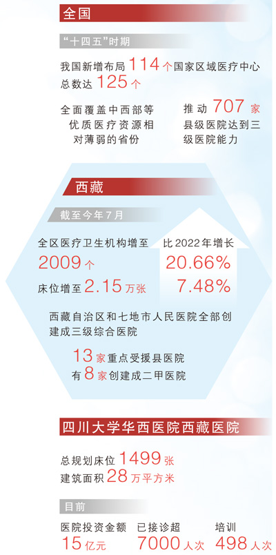 “近年来西藏医疗条件有了明显提高,但仍有大量疑难病、危重症患者需要向外转诊。”四川大学华西医院院长罗凤鸣说,建设国家区域医疗中心,就是为了进一步补短板,方便更多群众在家门口就医。