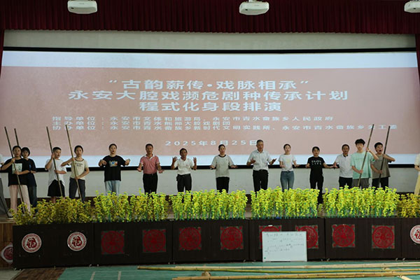 如今,永安大腔戏正以全新的面貌,穿越历史烟云,传递着“古韵新生”的民族薪火。粗犷唱腔穿透闽中群山,田间号子碰撞高腔锣钹,孩童举着话本比划大腔神韵,姑娘鬓边斜插金钗身着戏服取景留念……这颗扎根于畲族乡的“戏曲活化石”,正以“非遗+”方式,出圈又出彩,成为非遗传承与乡村振兴“双向奔赴”的重要文化力量。(永安市融媒体中心 黄中泉 青水畲族乡 戴安琪)