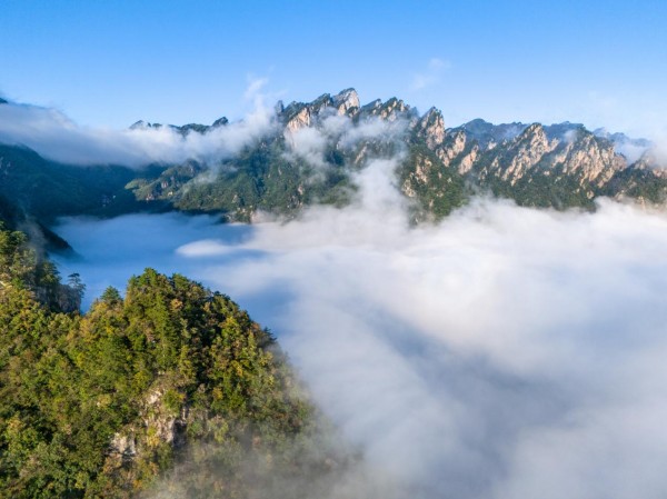 时值秋季,南阳老界岭景区即将迎来一年中最富诗意的季节——浩瀚的云海与漫山的彩林交织碰撞,构成了一幅动与静、素与彩完美融合的磅礴画卷,吸引众多摄影爱好者与游客观赏。