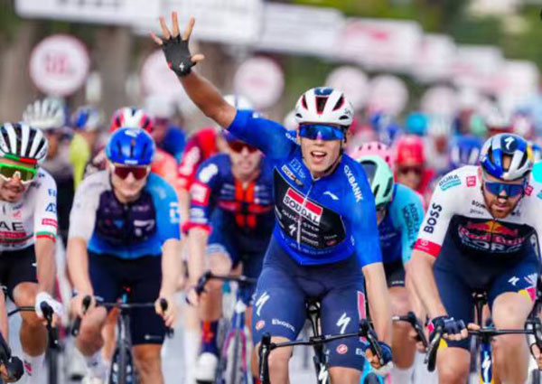 10月19日,2025环广西公路自行车世界巡回赛(简称“2025环广西世巡赛”)在南宁圆满落幕。此前已拿下4个赛段冠军、来自速的奥-快步车队的保罗·马尼耶在冲刺中拿下他在本届赛事上的第五胜,成功创造新纪录。但总冠军则归属于杰科-埃尔奥拉车队的保罗·达博。科菲迪斯车队的斯坦尼斯劳·阿尼奥科夫斯基和安盟FDJ车队的保罗·佩诺分获本赛段二、三名。