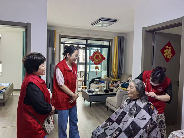 解决老年人需求,关键在于依靠“身边人”。社区党总支创新工作思路,吸纳南庭芳小区内的老党员、退伍军人等“五老”志愿者,组建了“向阳五老志愿服务队”。这支队伍不图报酬、纯属公益性质,但因“都是老邻居、知根知底”而显得更具亲和力。他们以“每日敲门行动”为抓手,对日访户(需每日关注的高龄独居老人)、月访户(需定期探访的特殊困难老人)开展常态化探访:早上敲敲门,确认老人是否安全起床;傍晚看一眼,留意老人晚餐是否有着落;遇到老人买菜不便,顺手捎带;发现水电故障,立即联系维修;甚至帮着给远在外地的子女通个电话……这些“琐碎小事”,成了老人眼中最踏实的“日常依靠”。更值得一提的是,服务队不仅联合社区老协理员,将服务延伸至生活照料、便民代办等领域——帮老人代缴水电费、代取快递药品,同时与常青街道卫生服务中心建立“健康联动”机制,定期邀请医护人员为老人测量血压血糖、开展慢性病管理讲座,让健康管理“不出小区”。