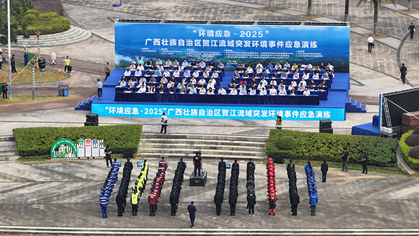 10月30日,广西壮族自治区生态环境厅、贺州市人民政府在贺州市北堤公园联合举行“环境应急·2025”广西贺江流域突发环境事件应急演练,检验贺江流域“一河一策一图”成果,提升跨界流域突发水污染事件应急处置水平。