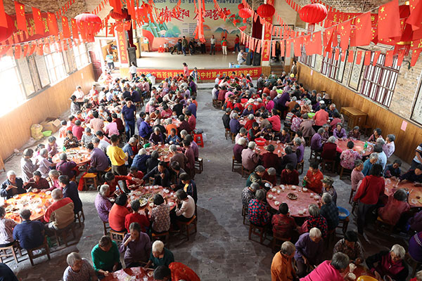 正午时分,“千叟宴”正式开席。村干部向全体长者致以诚挚的问候,席间志愿者们穿梭服务,为老人夹菜添汤。“这不仅是一顿饭,更是一种文化传承与道德教化。”石桥镇党委书记谢家世表示,通过“千叟宴”这样的活动,既弘扬了中华民族孝亲敬老的传统美德,也推动了新时代文明实践在基层落地生根,为乡村振兴注入源源不断的精神力量。