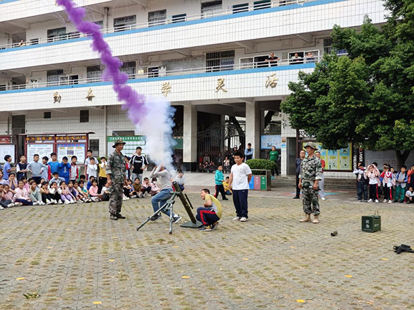 为厚植青少年爱国情怀,增强国防观念,近日,广东省始兴县人武部联合始兴县逸夫小学在学校操场为学生带来了一场沉浸式国防教育实践活动,让学生们在亲身体验中感受军事魅力,传承红色基因。
