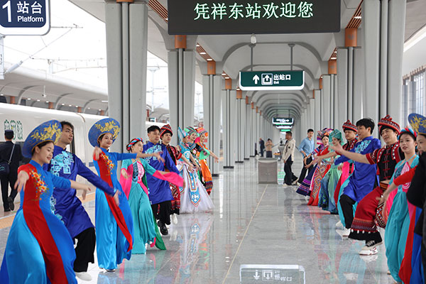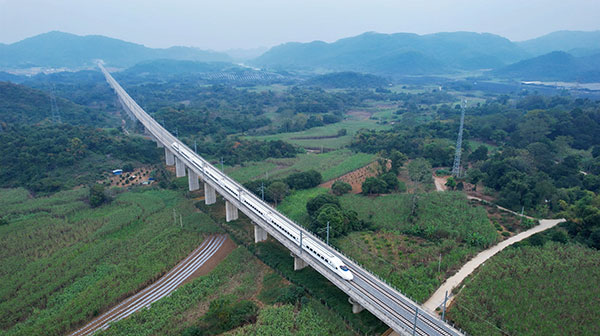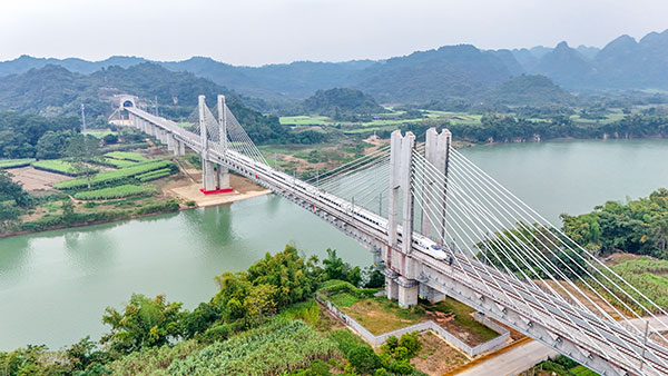 12月5日10时18分,载着641名旅客的D9668次首发动车组列车从广西凭祥东站驶向南宁,标志着南宁至凭祥高铁崇左至凭祥段建成通车。至此,南宁至凭祥高铁全线贯通运营,高铁直通中越边境口岸城市凭祥,形成对接东盟新的钢铁大动脉。
