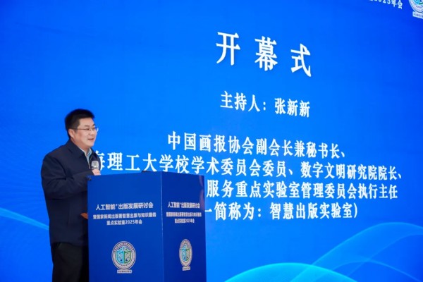 会议开幕式由中国画报协会副会长兼秘书长、上海理工大学教授、智慧出版实验室管理委员会执行主任张新新主持。河北领先文化传播有限公司董事长于晓华,南京大学出版研究院副院长、智慧出版实验室管理委员会主任杨海平,中国图书进出口(集团)有限公司总经理、智慧出版实验室指导委员会执行主任林丽颖致辞。