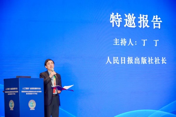 特邀报告环节由人民日报出版社社长丁丁主持。中国画报协会会长、中宣部出版局原副局长、一级巡视员、智慧出版实验室高级顾问刘建生作特邀报告。刘建生在报告中从人工智能的战略地位、发展方向、价值旨归、潜在风险及国际合作等多个维度出发,结合国家相关决策部署,系统阐释了以人工智能引领科研范式变革的重要意义,深入探讨了推动人工智能与产业发展、文化建设、民生保障和社会治理深度融合,抢占人工智能产业应用制高点、实现对千行百业全方位赋能的现实路径。