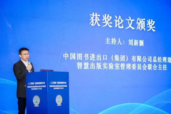会议颁奖环节由中国图书进出口(集团)有限公司总经理助理、智慧出版与知识服务重点实验室管理委员会联合主任刘新颢主持。人民日报出版社社长丁丁,中国图书进出口(集团)有限公司总经理、智慧出版实验室指导委员会执行主任林丽颖等10位领导专家应邀担任颁奖嘉宾。本次征文活动共收到论文40余篇,经严格评审,柯积荣等3位作者的作品荣获特等奖,程兰、隗静秋、张倵瑃等19位作者的6篇作品荣获一等奖,刘万、陈曦、刘峰等19位作者的9篇作品荣获二等奖,李国琪、王冬等34位作者的作品荣获三等奖,李文英、张耀聪等10位作者的作品荣获优秀奖。征文成果从理论研究、实践探索与案例展示三个层面,集中呈现了学界与业界在智慧出版领域的最新思考与创新成果,为推动智慧出版与知识服务高质量发展提供了有益的理论支撑和实践启示。