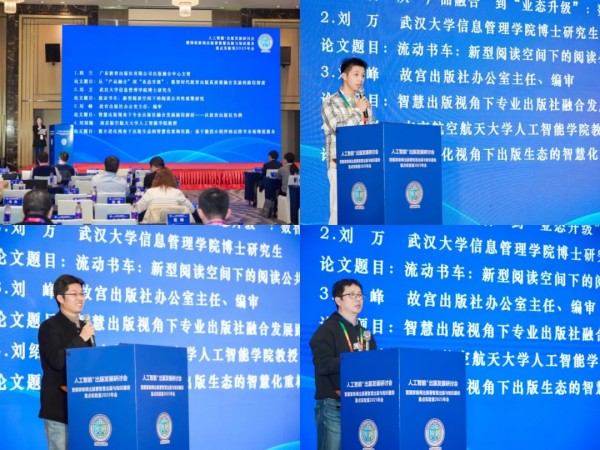 与此同时,获奖论文汇报环节在分会场举行,由浙江万里学院副教授钱聪主持。广东教育出版社有限公司出版融合中心主管程兰等4位获奖论文作者,围绕教育出版融合发展、新型阅读空间公共性、专业出版社融合路径及图书市场增值服务等主题作论文汇报。中国新闻出版传媒集团《中国出版》杂志社副主编杨晓芳、清华大学出版社《科技与出版》杂志主编苏磊对汇报成果进行了专业点评。随后,分会场举行“人工智能+出版发展”研讨座谈会,由淮阴师范学院图书馆馆长、智慧出版实验室学术委员会副主任尹达主持。国家图书馆出版社营销策划部主任张颀、北京云逍文化有限责任公司总经理孙秀翠等5位专家,围绕人工智能赋能出版业发展分享了实践经验与前沿思考。