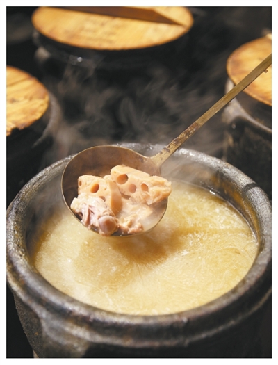 和热干面一样充满江城气息的早餐单品,还有糊汤粉。长江、汉水在武汉交汇,当地人爱吃活鱼。被称为“武汉一绝”的糊汤粉,以圆米粉为主料,特色则是汤底:将小鲫鱼彻夜熬制,直至鱼肉脱形、鱼骨几近熬化,形成乳白的汤色,再加入胡椒粉去腥提味,并用生米粉调糊,最终制成糊汤。糊汤粉地道的吃法是与油条配合“过早”,鱼汤的鲜香融合油条的脆爽,这一口滋味里浓缩了武汉码头文化的精华。