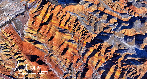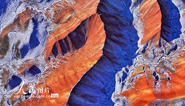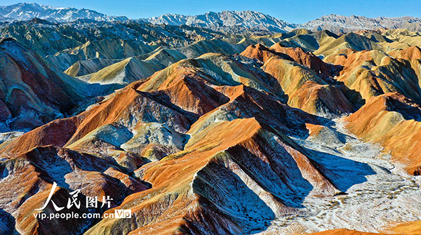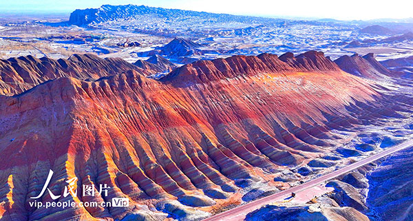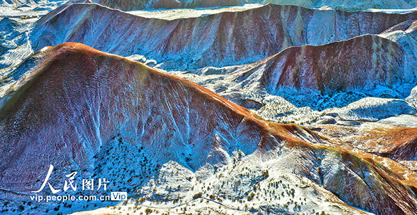 2025年11月24日,雪后初晴,在甘肃省张掖市七彩丹霞旅游景区,白雪与丹霞交相辉映,呈现出“雪浴丹霞”美景,尽显大自然神奇魅力。王将摄(人民图片网)