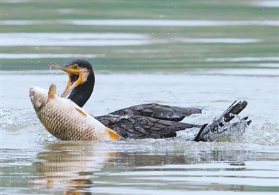 正在捕食的鸬鹚。