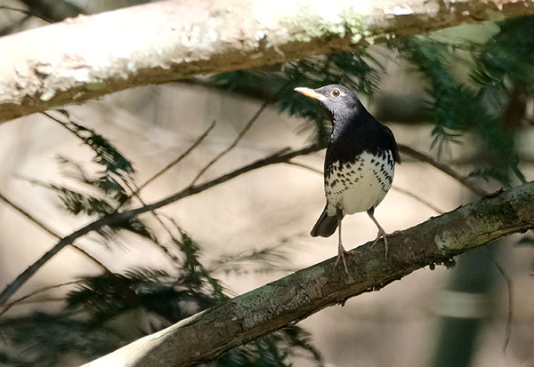 乌灰鸫属候鸟,繁殖于我国中部及日本地区,越冬于我国东南、西南区域,主要栖息于海拔400~1500米的山地阔叶林及针阔混交林中下层。该鸟种地栖性强,性情隐蔽而怯生,非繁殖季多集小群活动于林缘、园林及疏林地带,较难被发现。