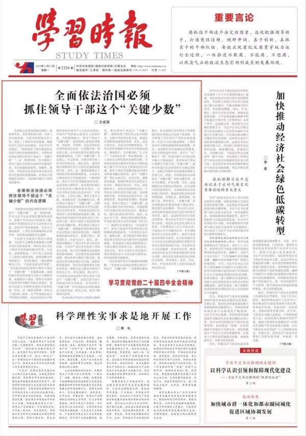 习近平总书记指出,“各级领导干部的信念、决心、行动,对全面推进依法治国具有十分重要的意义”。站在决胜“十四五”、谋划“十五五”的历史关口,我们更能深刻感受到习近平法治思想所蕴含的真理力量和实践伟力。“十五五”时期是基本实现社会主义现代化夯实基础、全面发力的关键时期,我们要深学笃行习近平法治思想,切实将其作为法治中国建设的灵魂和旗帜、作为全面依法治国的根本遵循和行动指南,时时处处用“十一个坚持”对照、审视工作,真正把法治理念、法治精神、法治思维、法治方式贯穿工作全过程各方面,在全面依法治国实践中彰显“关键少数”作用。