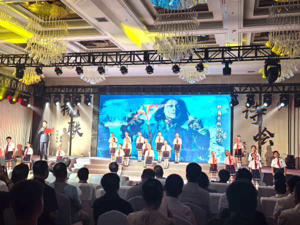 “他们都老了吗?他们在哪里啊?他们就这样,从容赴远方……”墨舞烽烟写抗联,童声清脆唱红歌,在“溪山浩气 诗咏忠魂”辽宁诗歌周本溪抗联诗会现场,杨靖宇、赵一曼、邓铁梅等抗日爱国将领的影像,以及东北抗联史实陈列馆、东北抗日义勇军纪念馆、本溪烈士陵园等红色地标在电子屏幕上渐次亮起,孩子们胸前的红领巾,汇成火热的赤色浪潮。光影交织,将全场观众带入久远而深沉的回忆。