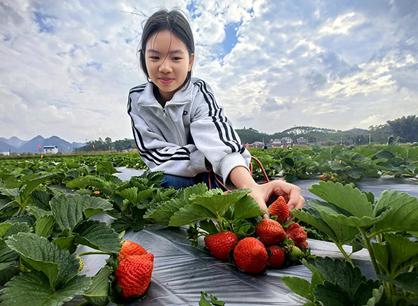 冬日时节,广西来宾市忻城县古蓬镇龙利村草莓园的草莓迎来采摘季,吸引众多游客前来采摘。近年来,当地通过草莓种植,推动现代农业与乡村旅游融合发展,促进农业增效和农民增收。(庞革平、樊绍光摄影报道)