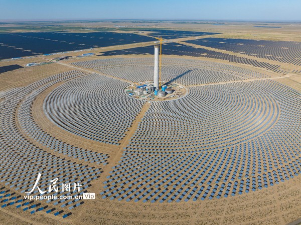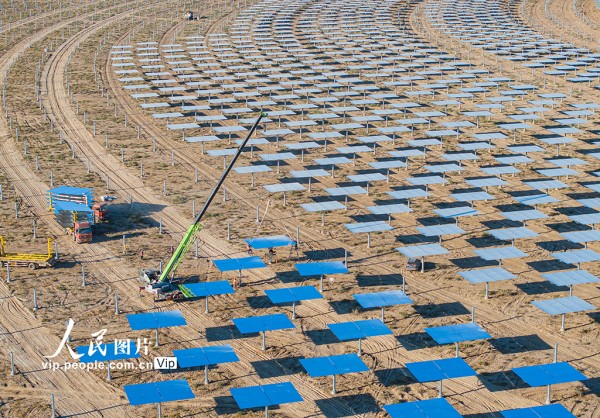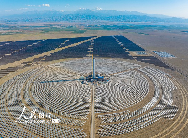 新疆昌吉回族自治州鲁能阜康市多能互补项目10万千瓦光热工程建成投运后,年发电量约1.2亿千瓦时,可等效节约标煤4万吨,满足约8万户家庭的用电需求,同时减少二氧化碳排放约14万吨/年。该项目还采用“板上聚光发电、板下生态修复”的荒漠治理模式,在镜场阴影区域种植耐旱牧草,形成荒漠治理与清洁能源协同发展的综合收益模式。何龙摄(人民图片网)