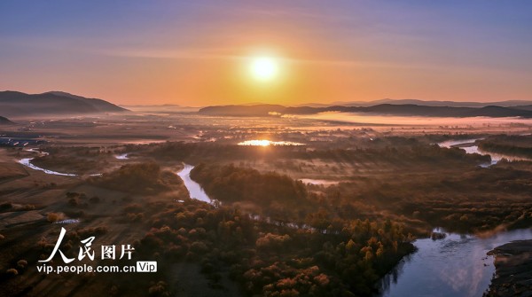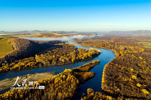 2025年9月29日,内蒙古呼伦贝尔额尔古纳国家湿地公园,层林尽染,秋色如画。邓国晖摄(人民图片网)