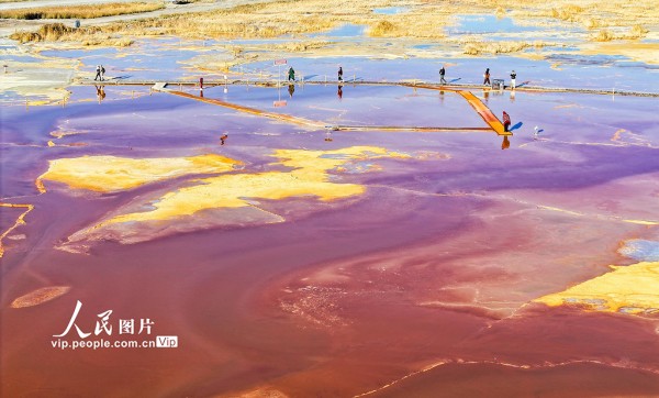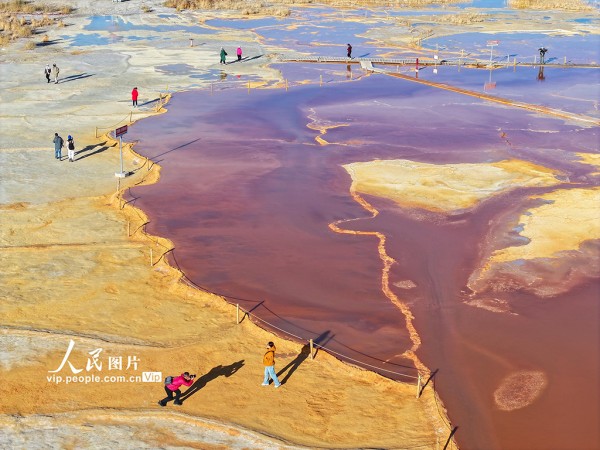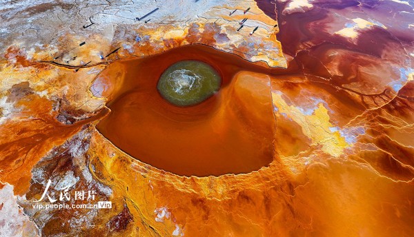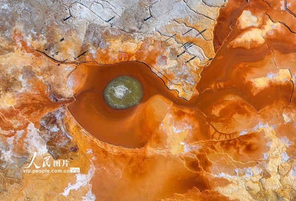 2025年10月14日,青海省海西蒙古族藏族自治州茫崖市花土沟镇莫合尔布鲁克村,艾肯泉色彩斑斓,景色壮美。张红心摄(人民图片网)