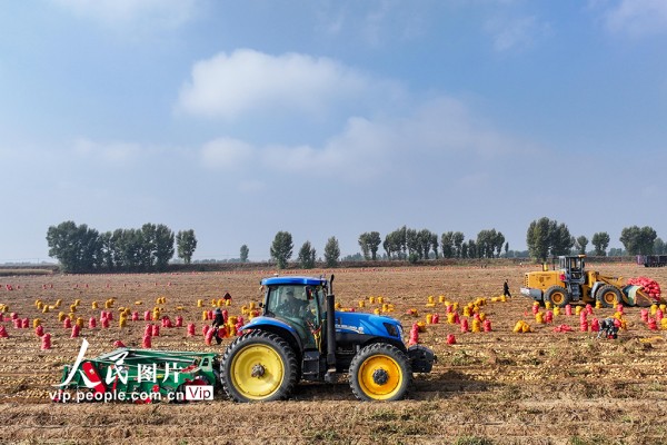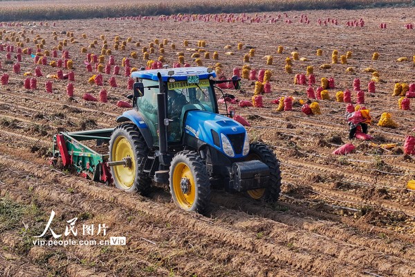 眼下,内蒙古各地田间地头一派热火朝天的丰收图景,农民们抢抓农时开展采收、外运工作。王晓博摄(人民图片网)