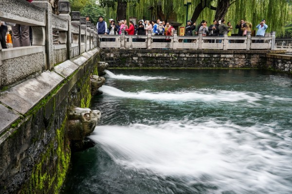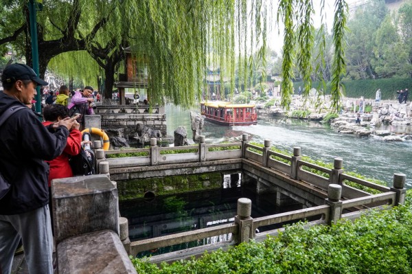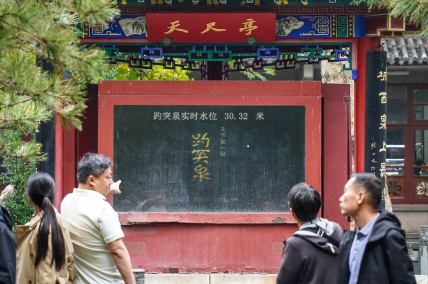 受近期降雨影响,山东省济南市群泉奔涌,吸引游客前来观赏。新华社记者 朱峥 摄