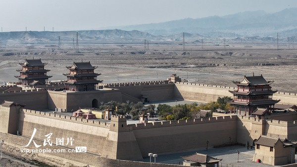 2025年10月16日,甘肃省嘉峪关市关城景区,游客登上城楼领略大漠雄关的壮阔美景。陈坤摄(人民图片网)
