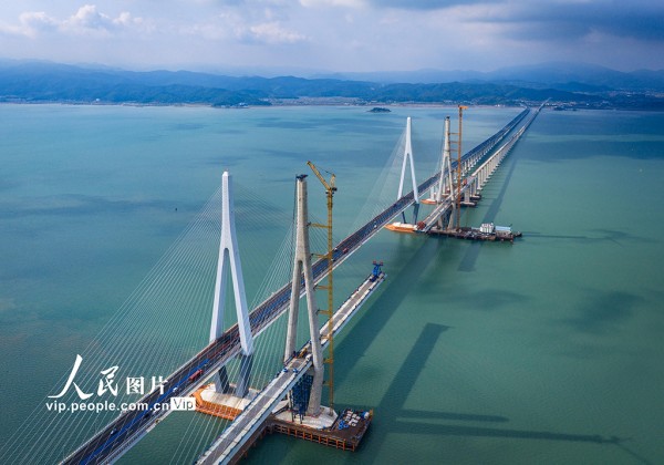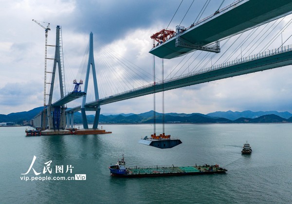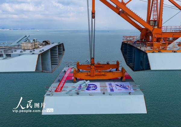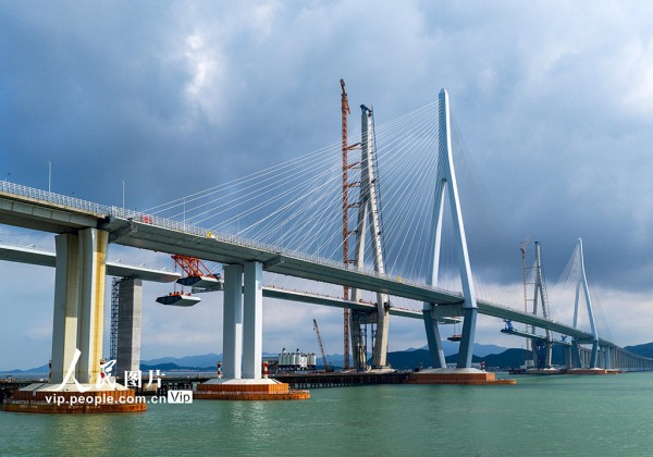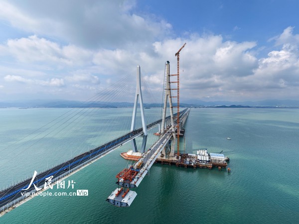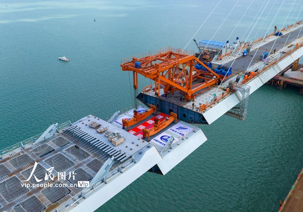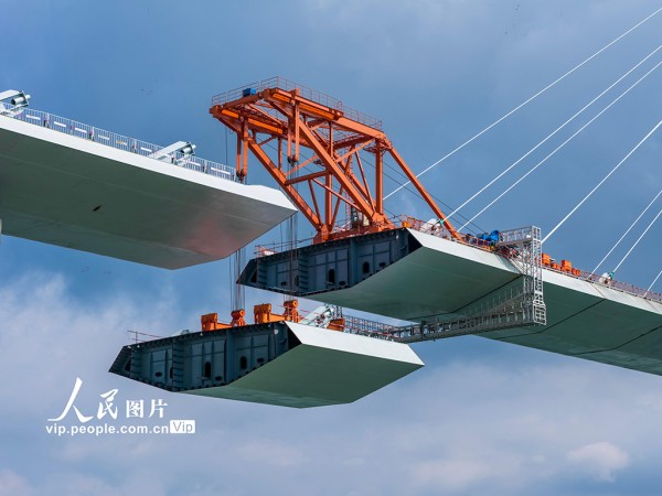 大桥双侧边跨合龙,为后续主桥合龙积累了宝贵经验,也标志着项目全面转入上部结构施工新阶段。胡学军摄(人民图片网)
