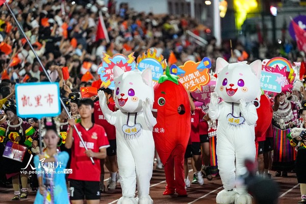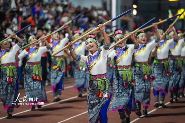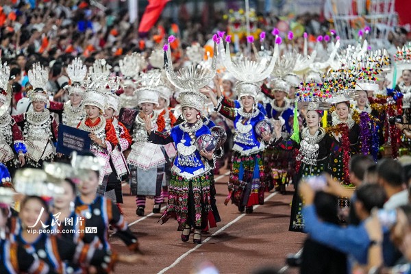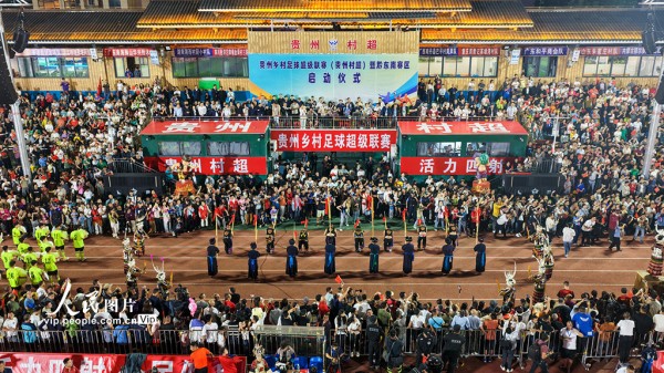 作为榕江“村超”经验的全域推广实践,赛事由贵州省体育局、贵州省文旅厅联合主办,从“单点火爆”到“全域联动”,构建“县县踢村超、周周有球赛、月月有主题活动”格局,采用“县资格赛—市预赛—省级决赛”三级进阶模式,2025年10月至2026年6月间将举办2000余场比赛。赛事同时融合文旅元素,穿插非遗展演、歌舞表演,设立农特产品展销区,形成“看球赛、赏非遗、购特产”的多元体验场景。韦贵金摄(人民图片网)