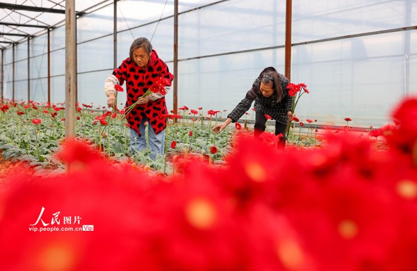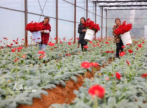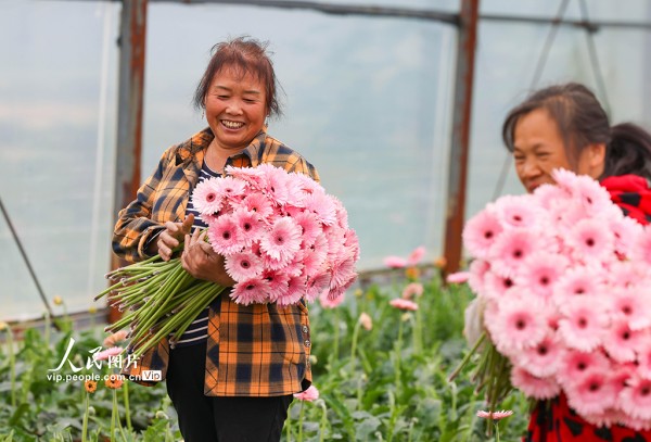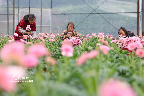 近年来,贵州省铜仁市玉屏侗族自治县依托地理环境优势,采取“公司+党支部+基地+农户”的种植模式,大力发展鲜花种植,做活“美丽经济”,助力乡村振兴。胡攀学摄(人民图片网)
