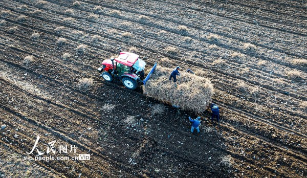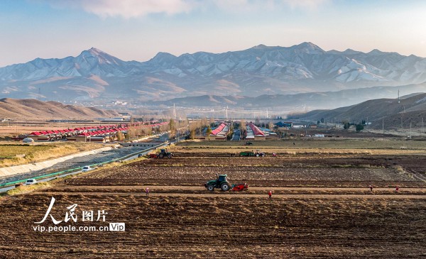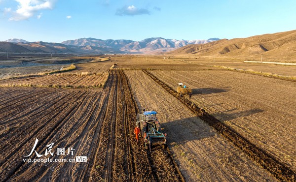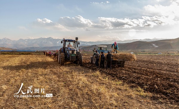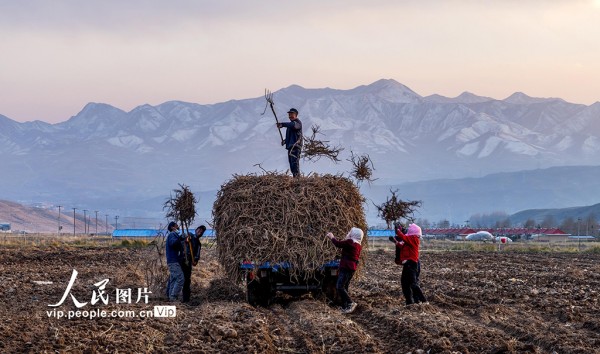 2025年10月28日,甘肃省武威市天祝县华藏寺镇黄草川村,药农在田间加紧采收黄芪。赵世鹏摄(人民图片网)