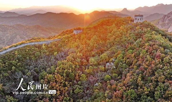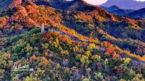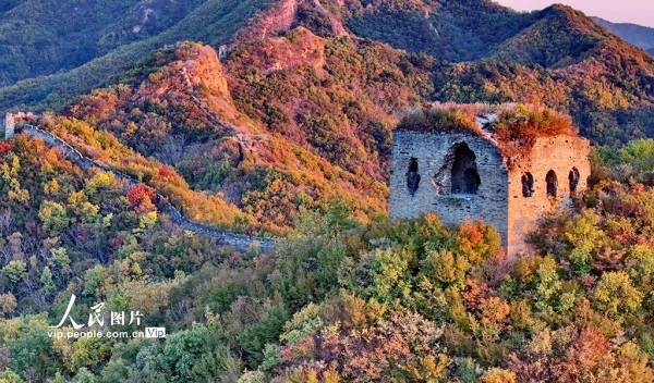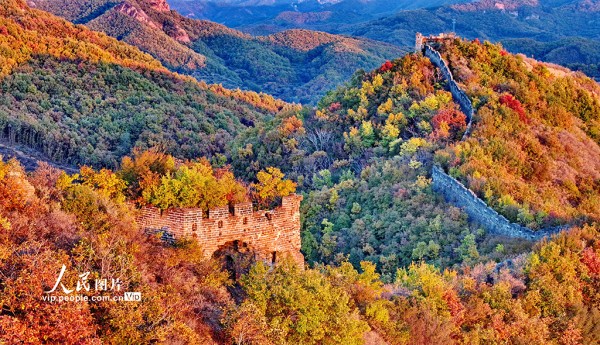 深秋时节,河北秦皇岛海港区驻操营镇董家口村周边的古长城迎来最佳观赏期。山间层林尽染,红、橙、黄、绿等色彩交织错落,与蜿蜒的古长城相映成趣,构成一幅韵味悠长的秋日画卷。曹建雄摄(人民图片网)