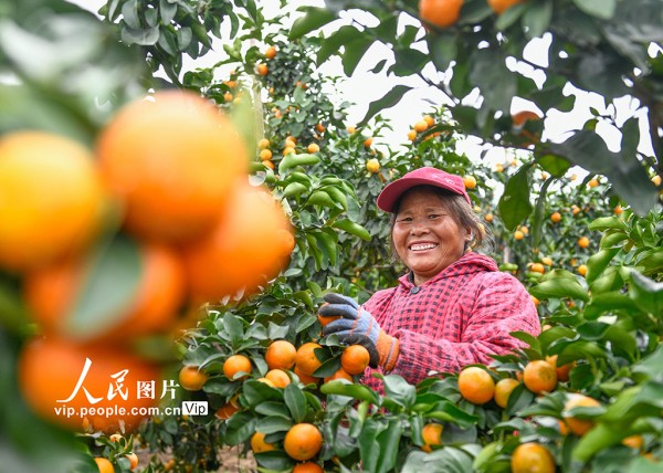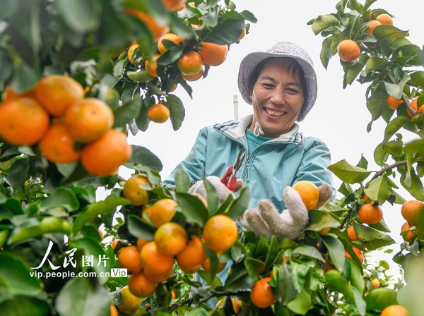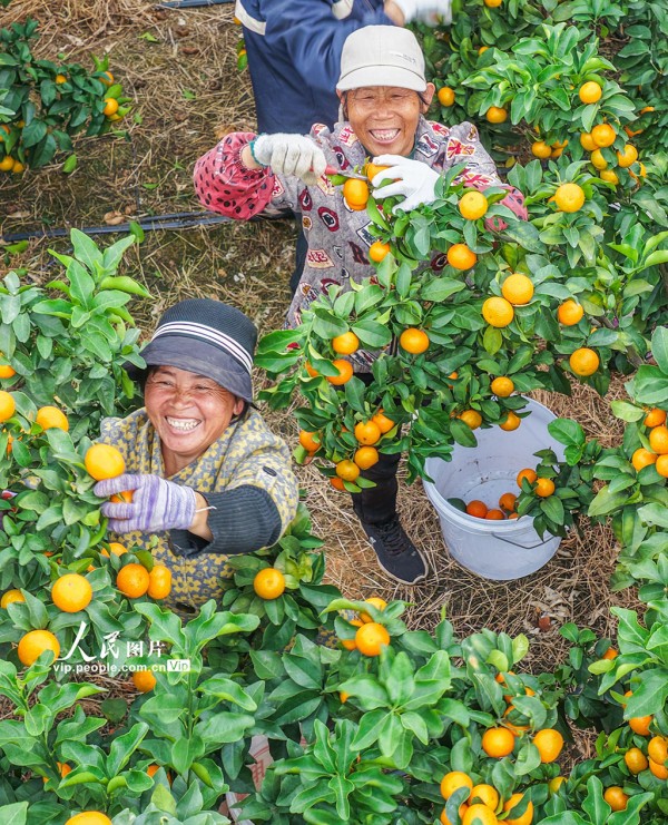 2025年11月2日,在湖南省永州市道县蚣坝镇兴桥村,村民正在采摘金秋砂糖橘。近日,道县果农种植的金秋砂糖橘迎来收获季,果农抢抓农时采摘、分拣、转运,供应市场。近年来,道县依托土壤、气候、光照等自然地理优势,发展绿色果业经济,带动农民增收致富,助力乡村振兴。蒋克青摄(人民图片网)