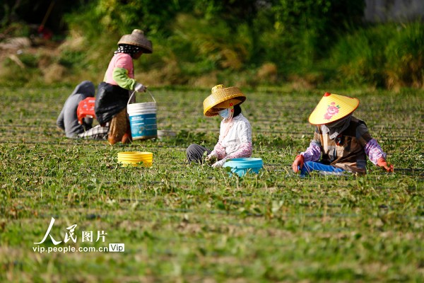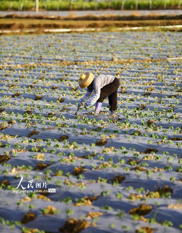 2025年11月7日是立冬节气,海南三亚地区农民抢抓农时做好冬季瓜菜播种、田间管理等工作,田间地头一派繁忙景象。陈文武摄(人民图片网)
