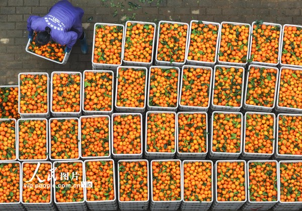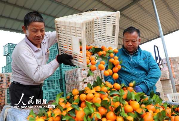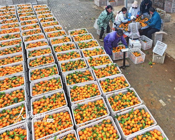 近日,江西省吉安市泰和县砂糖橘喜获丰收,农民抢抓农时采收,及时上市销售,实现丰产增收。邓和平摄(人民图片网)