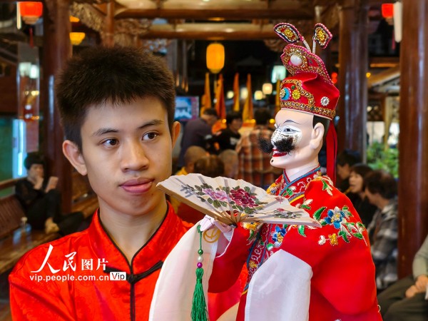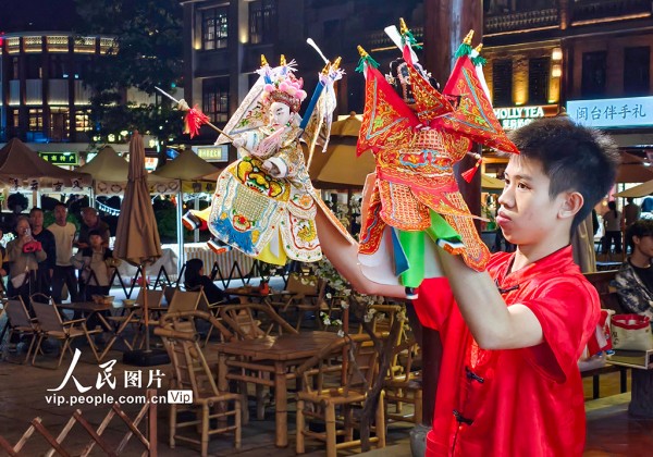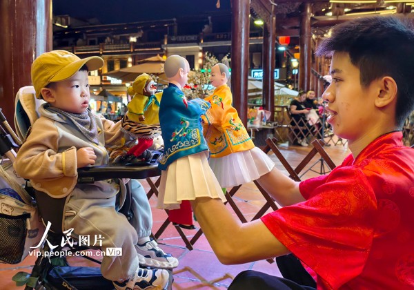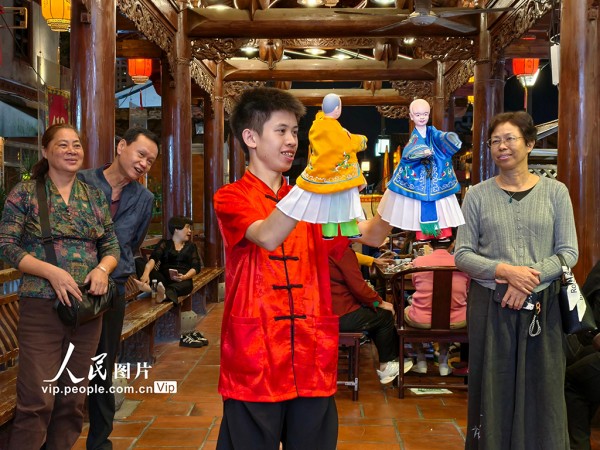 近年来,漳州市将特有的布袋木偶艺术作为古城夜经济的亮点,组织街头表演,既留住了游客的脚步,又带动了周边餐饮、文创和民宿消费,让千年文化在烟火气中焕发新生。胡学军摄(人民图片网)