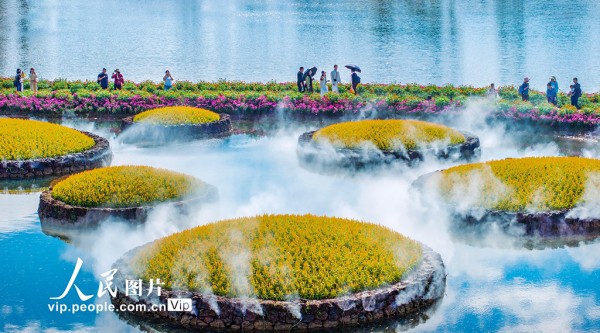 2025年11月23日,游客在广西南宁市青秀山风景区丘石花园里游玩赏花。曾祥忠摄(人民图片网)