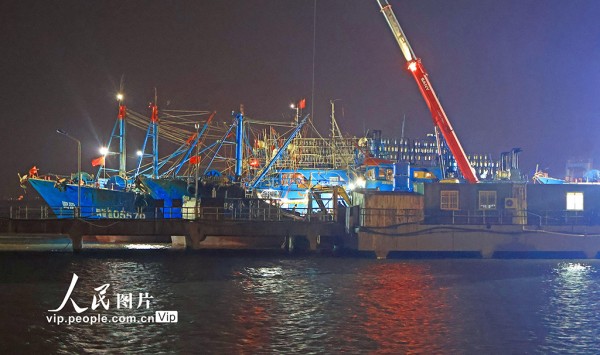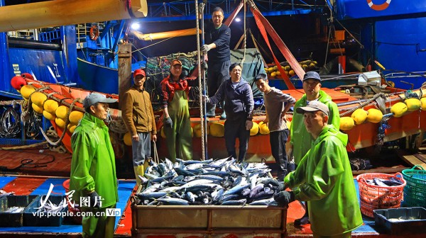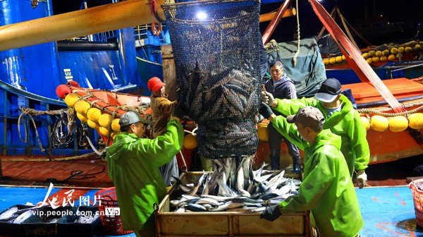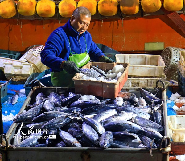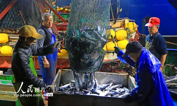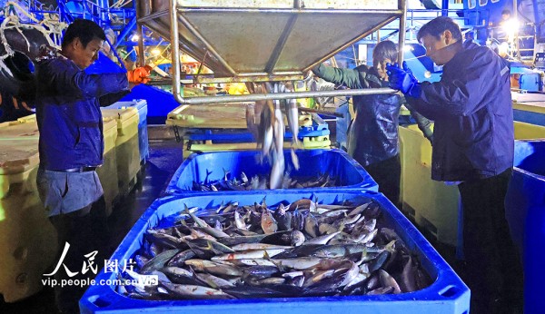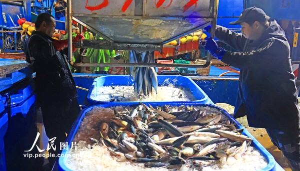 渔业是玉环市的支柱产业。冬汛是捕捞黄金期,当地渔民抓紧出海作业,及时将新鲜海产运送上岸,供应市场。段俊利摄(人民图片网)