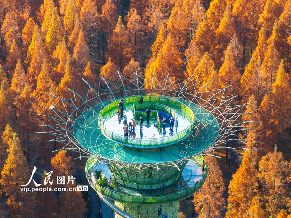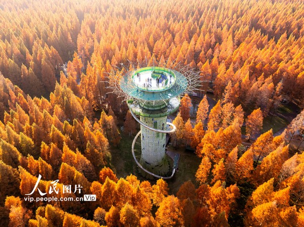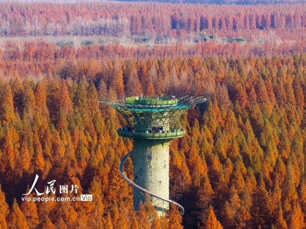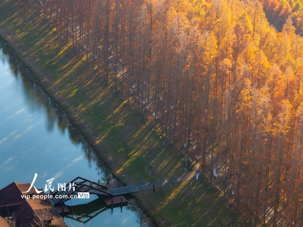 2025年12月5日,江苏盐城黄海森林公园万亩水杉林迎来最佳观赏期。绵延的杉林宛如天然绘就的油画,吸引众多游客前来观光打卡。胡志超摄(人民图片网)