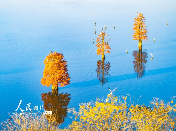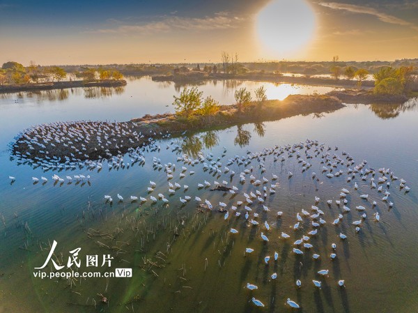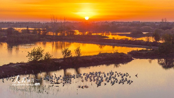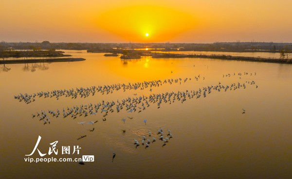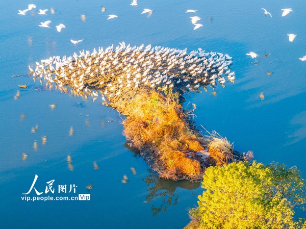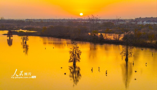 近年来,兴化市全力推进环境整治与生态修复,不断改善的生态环境吸引了越来越多的鸟类来此栖息越冬。周社根摄(人民图片网)